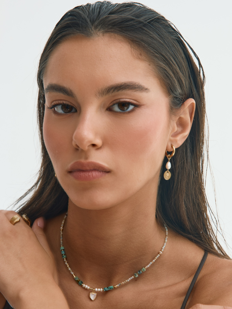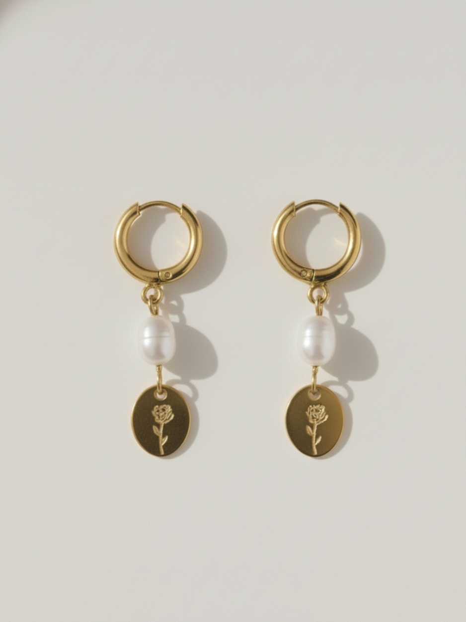 זוג עגילי ניקול בשילוב פנינה מתורבתת ותליון פרח ורד