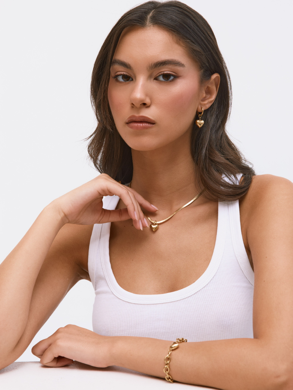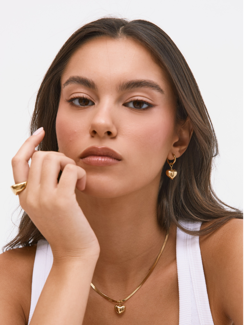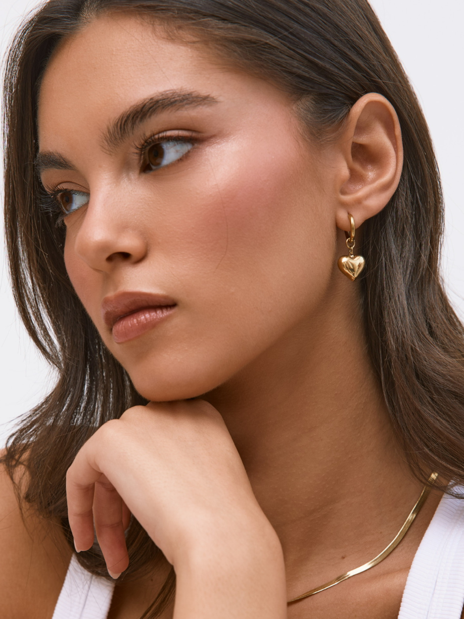 זוג עגילי זהב בשילוב תליון צ׳אנקי לב