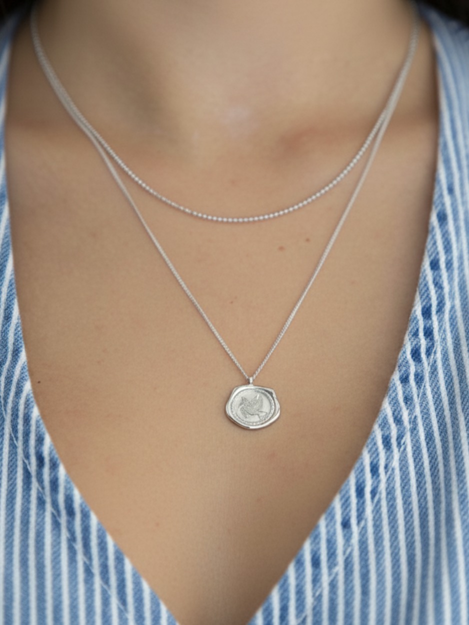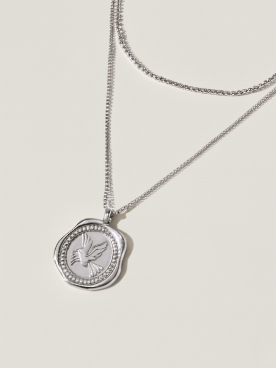 שרשרת כפולה בשני סגנונות עם תליון מטבע יחודי