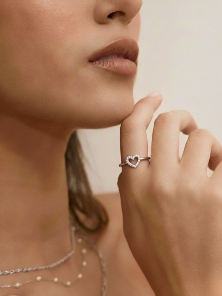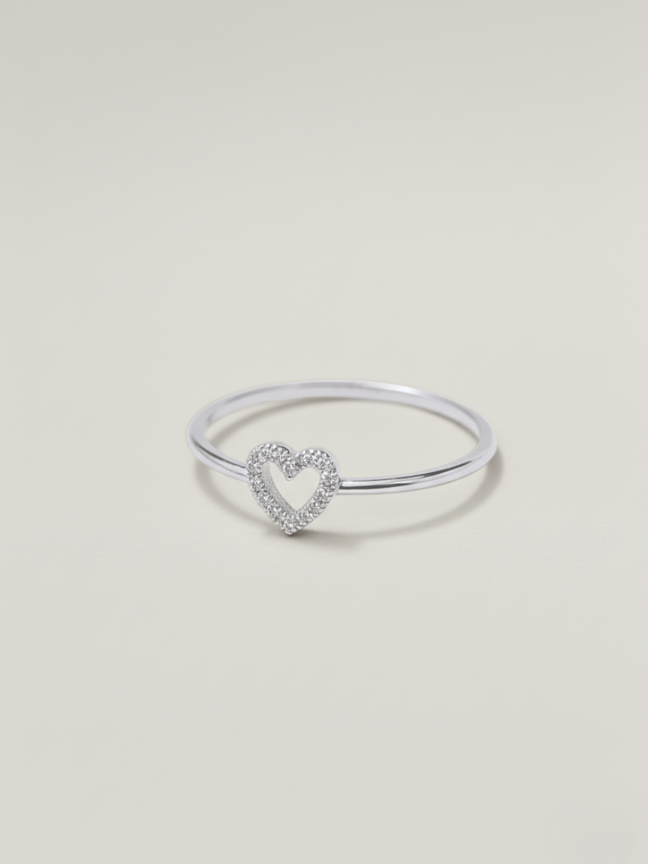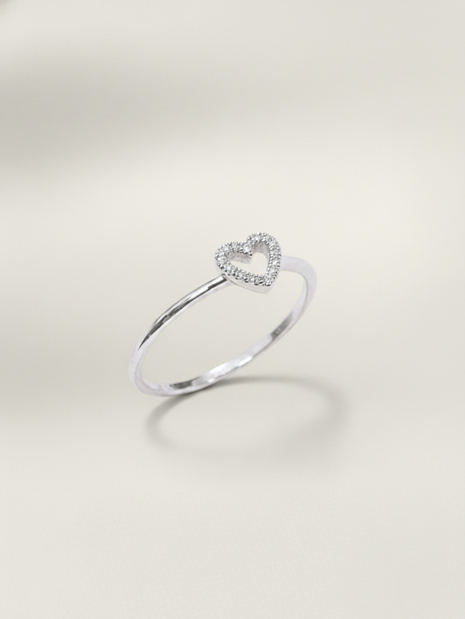 טבעת כסף עדינה בשילוב תליון לב עדין משובץ