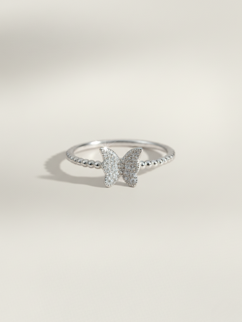 טבעת פרפר עדינה עם זרקונים משובצים מהודרים
