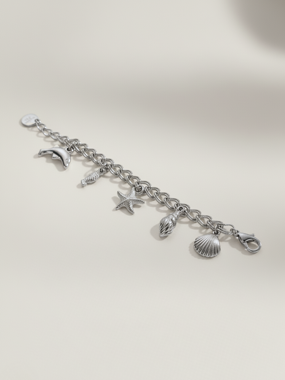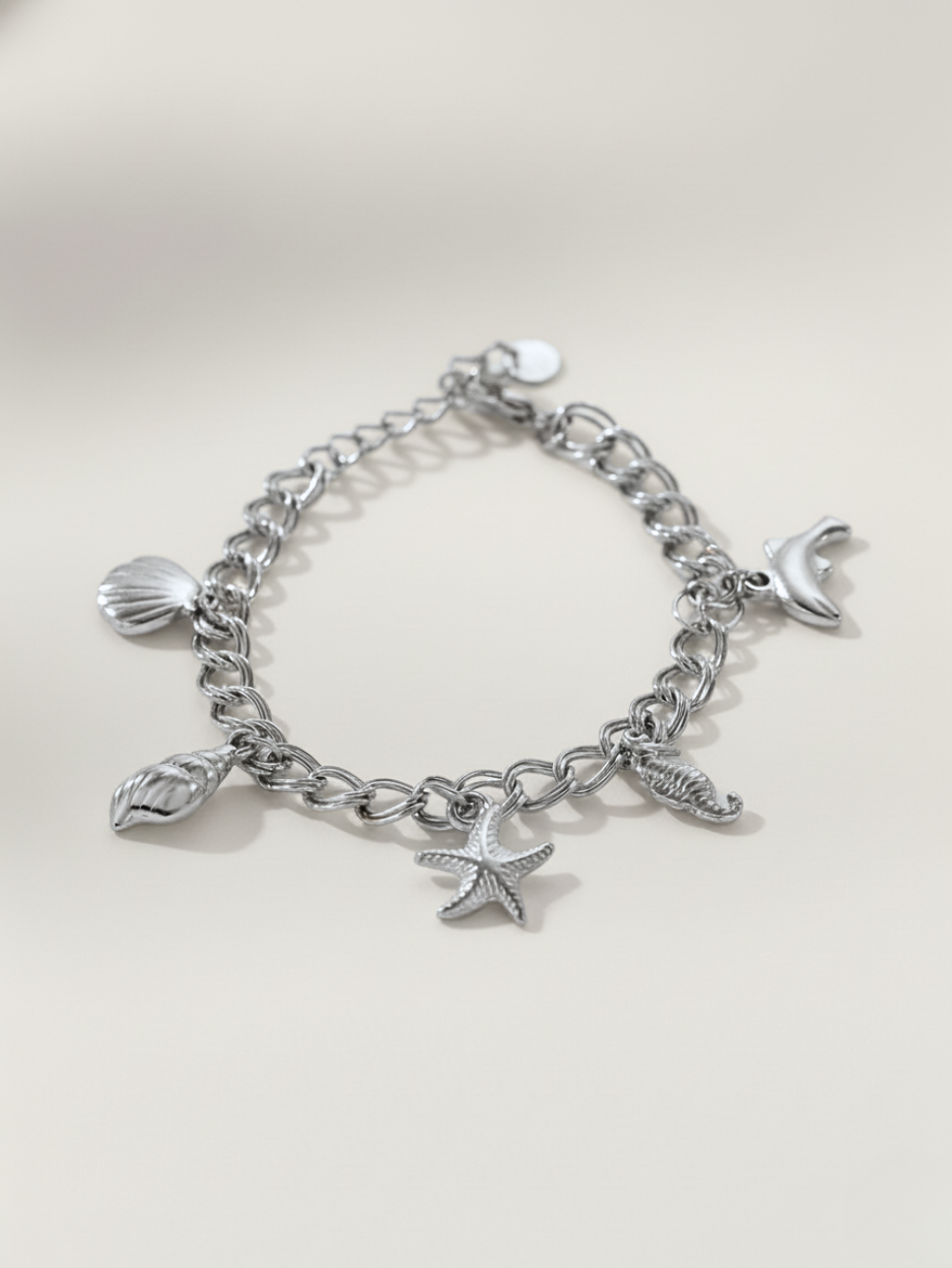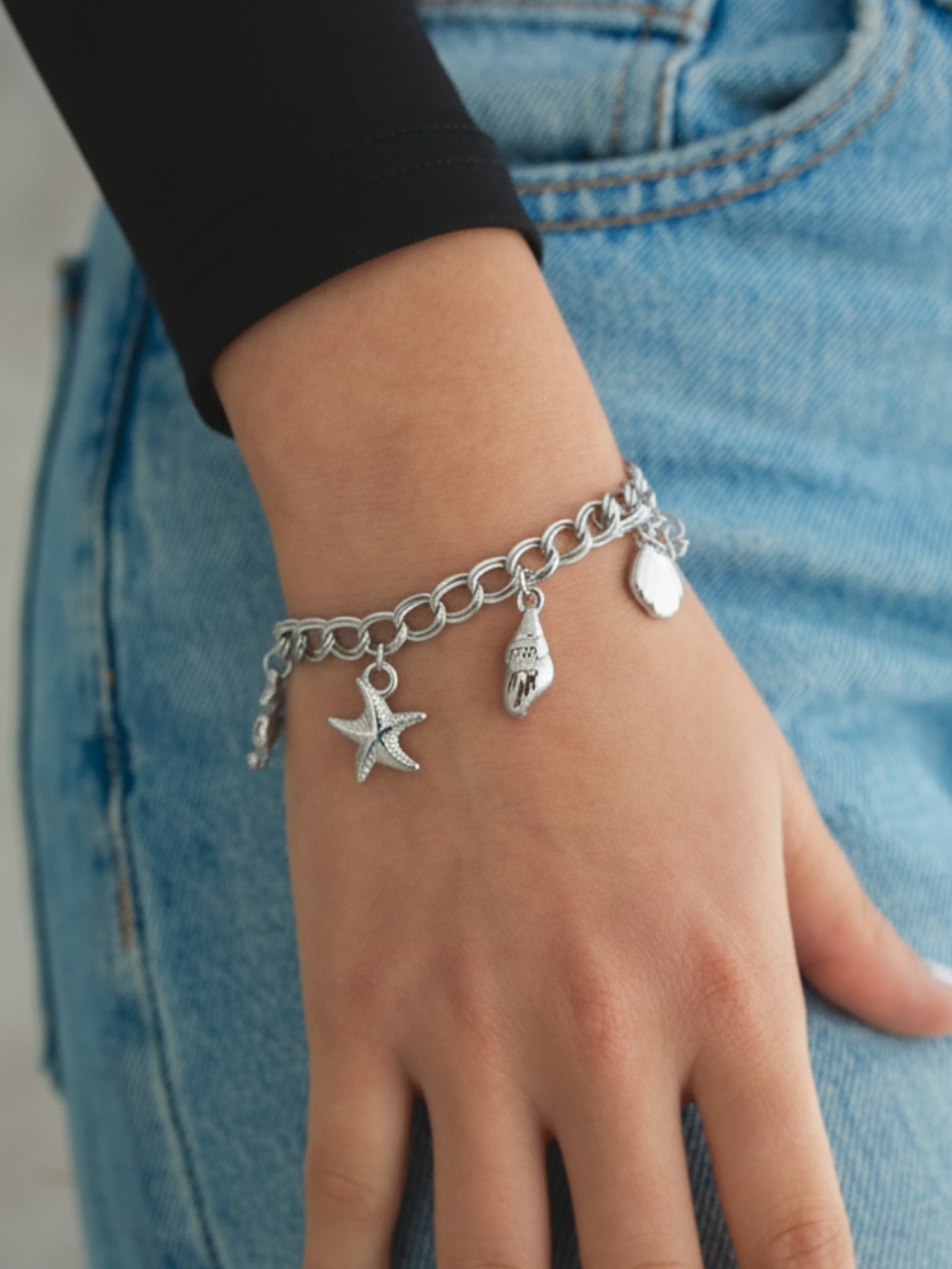 צמיד חוליות כסף בשילוב תליונים בולטים בסגנון ימי