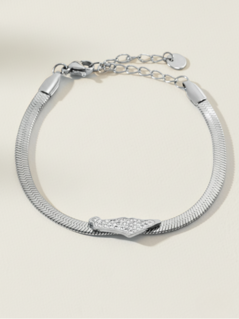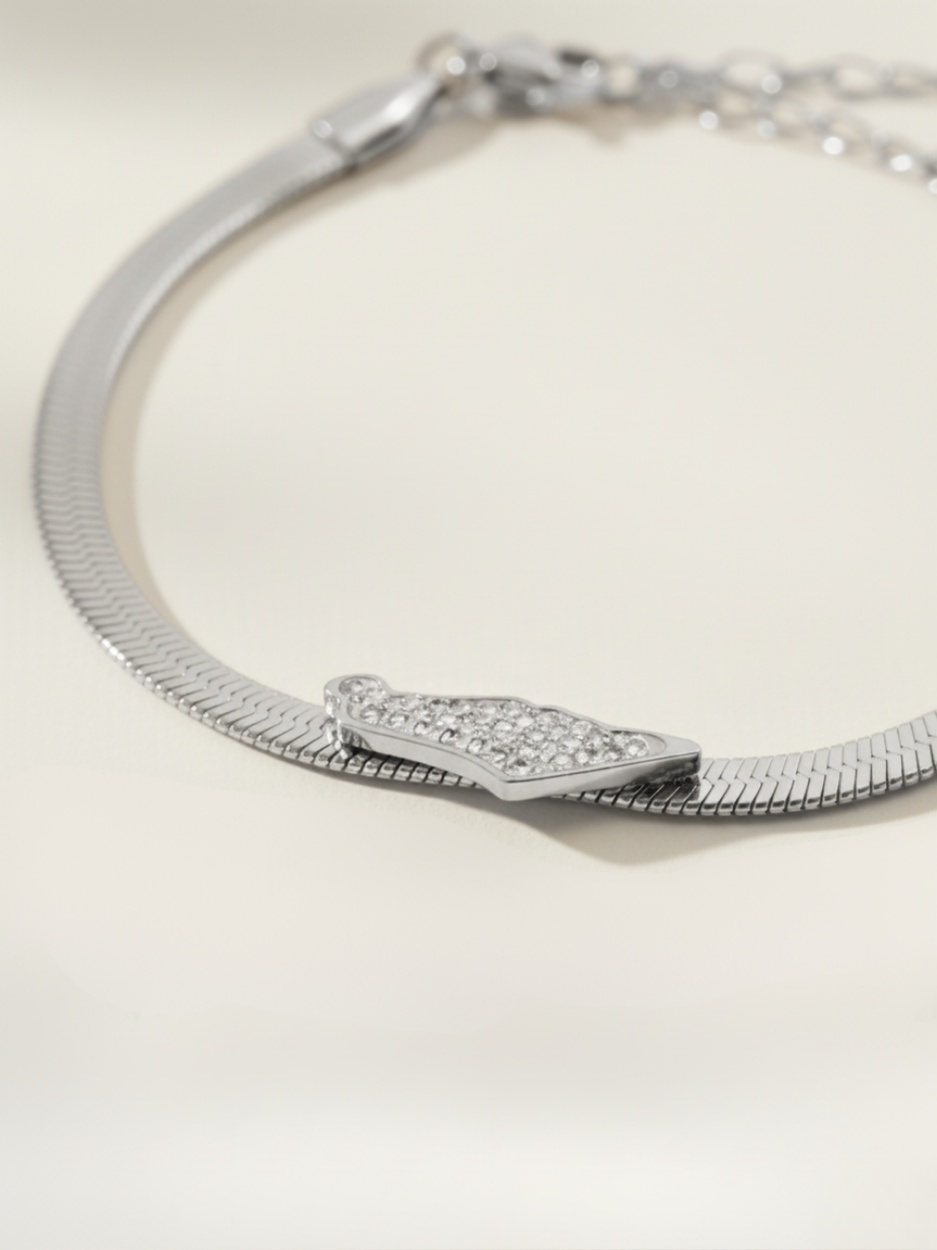 צמיד נחש כסף בשילוב מפת ארץ ישראל בשילוב זירקונים משובצים