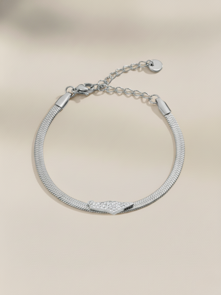 צמיד נחש כסף בשילוב מפת ארץ ישראל עם זרקונים משובצים