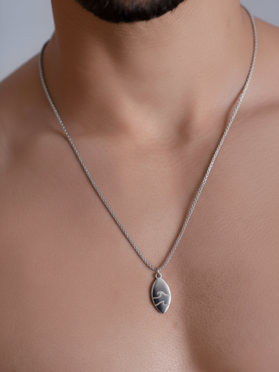 שרשרת גורמט כסף בשילוב תליון גלים מהודר