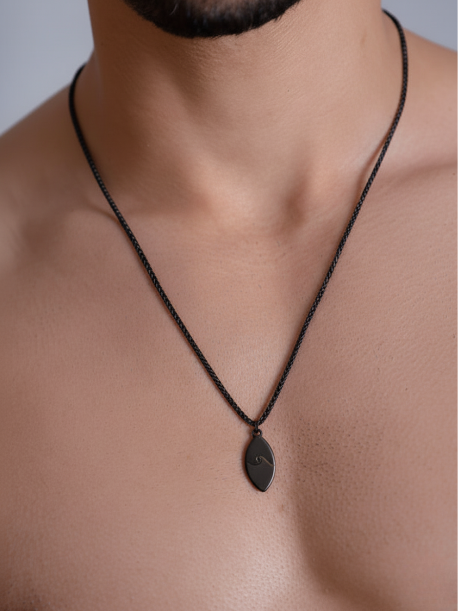 שרשרת גורמט מושחרת בשילוב תליון גלים מהודר