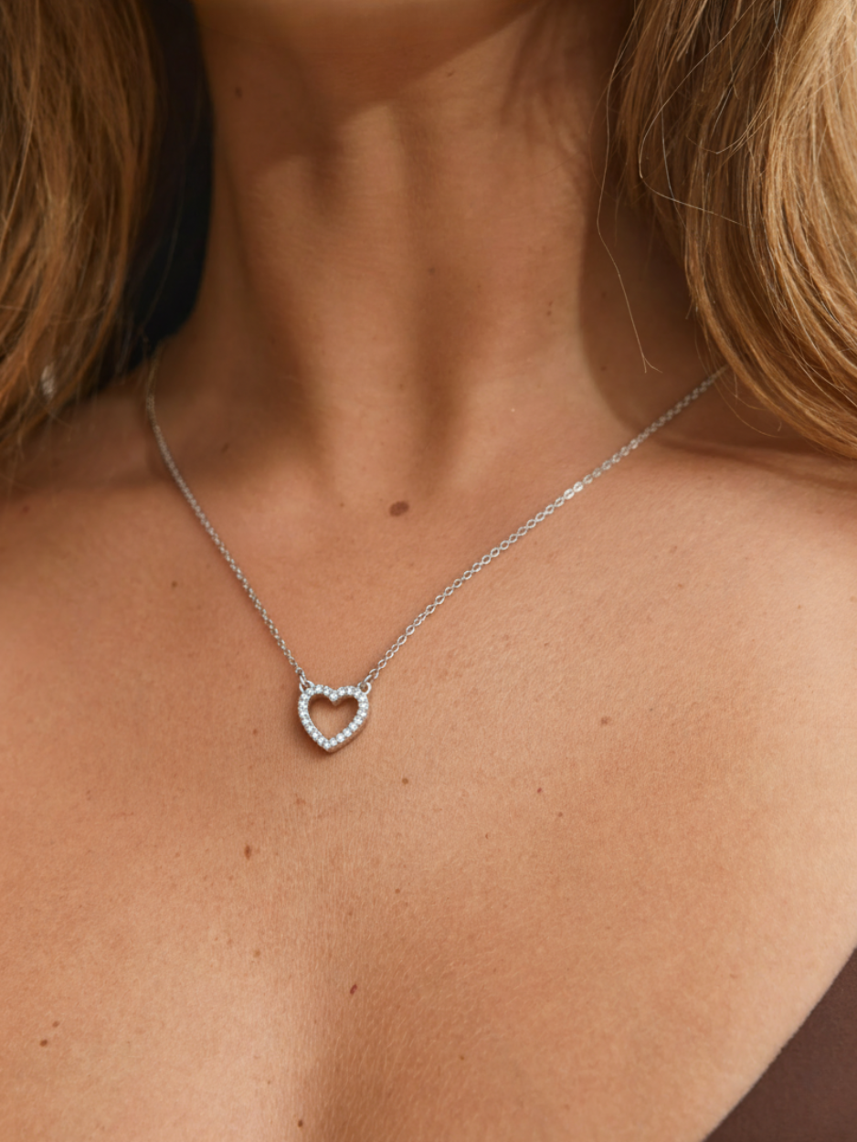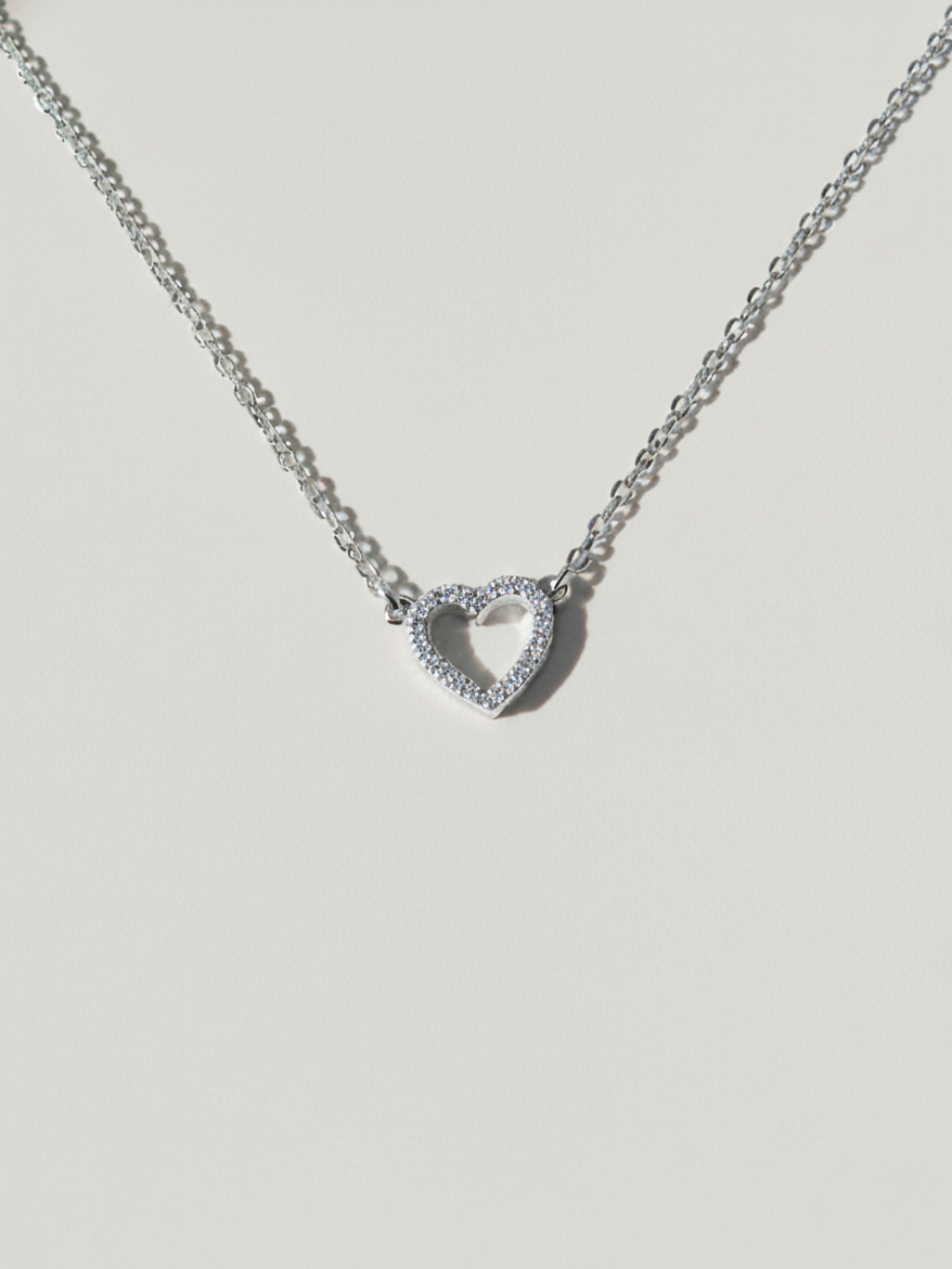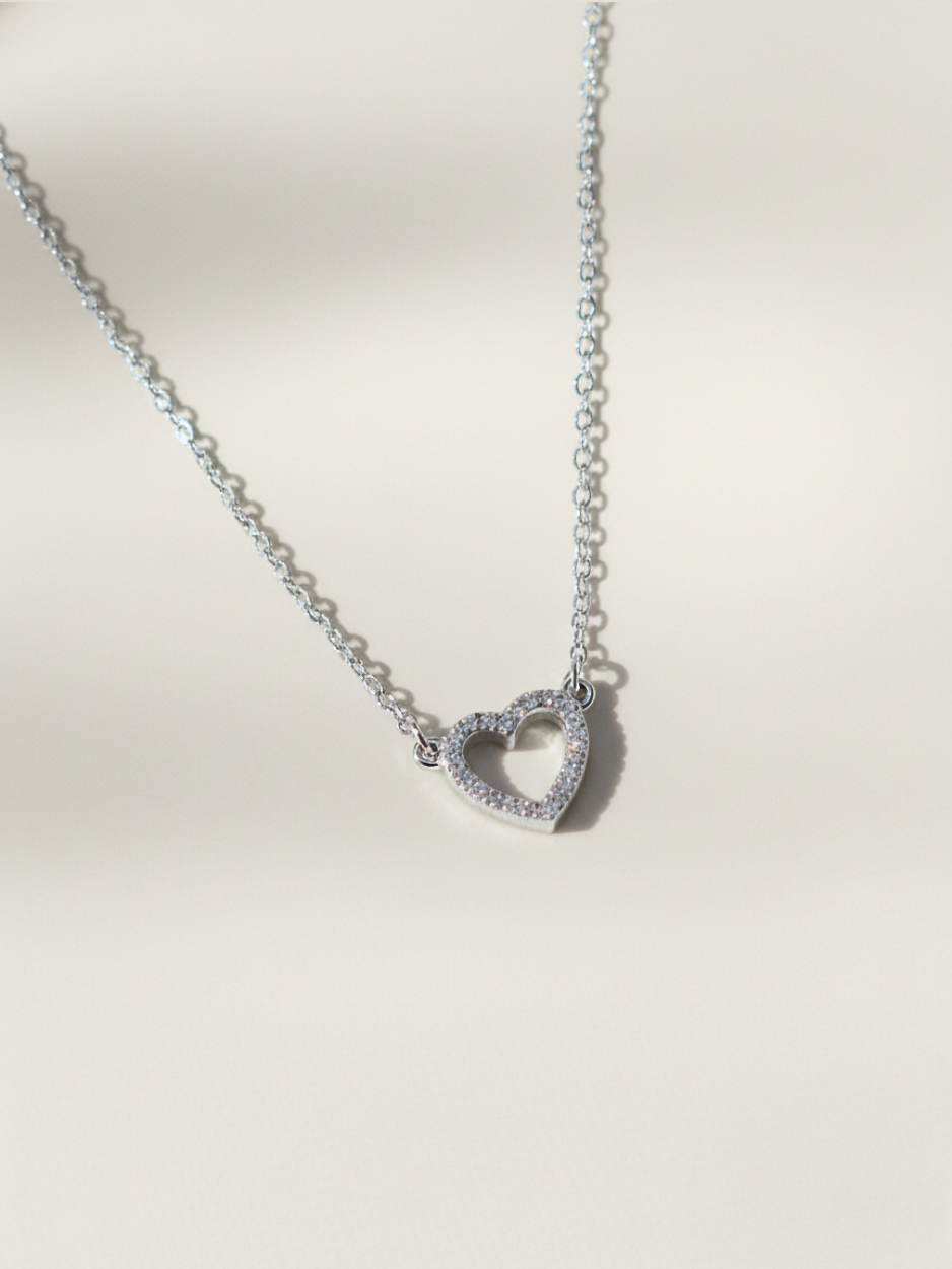 שרשרת כסף עדינה בשילוב תליון לב משובץ מהודר