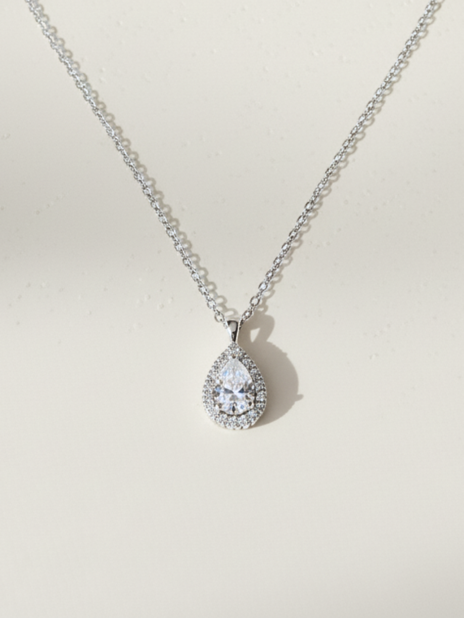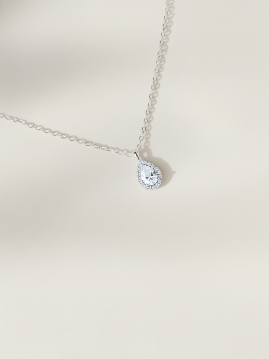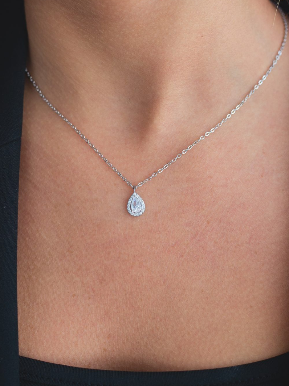 שרשרת כסף בשילוב תליון טיפה עדינה משובצת