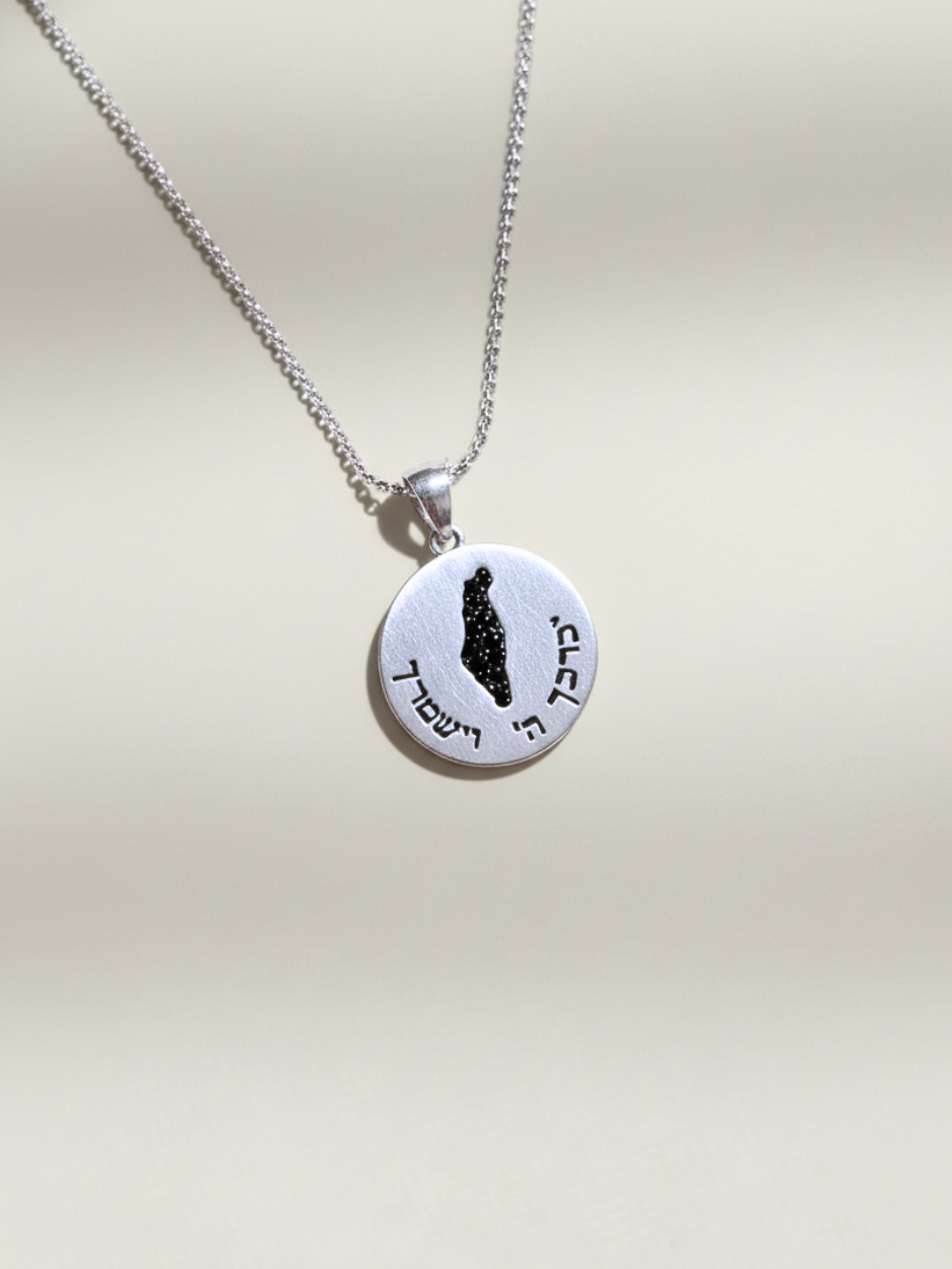 שרשרת כסף בשילוב תליון יחודי של מטבע מפת ארץ ישראל משובץ אבני חן וחריטה של הכיתוב { יברכך ה וישמרך }