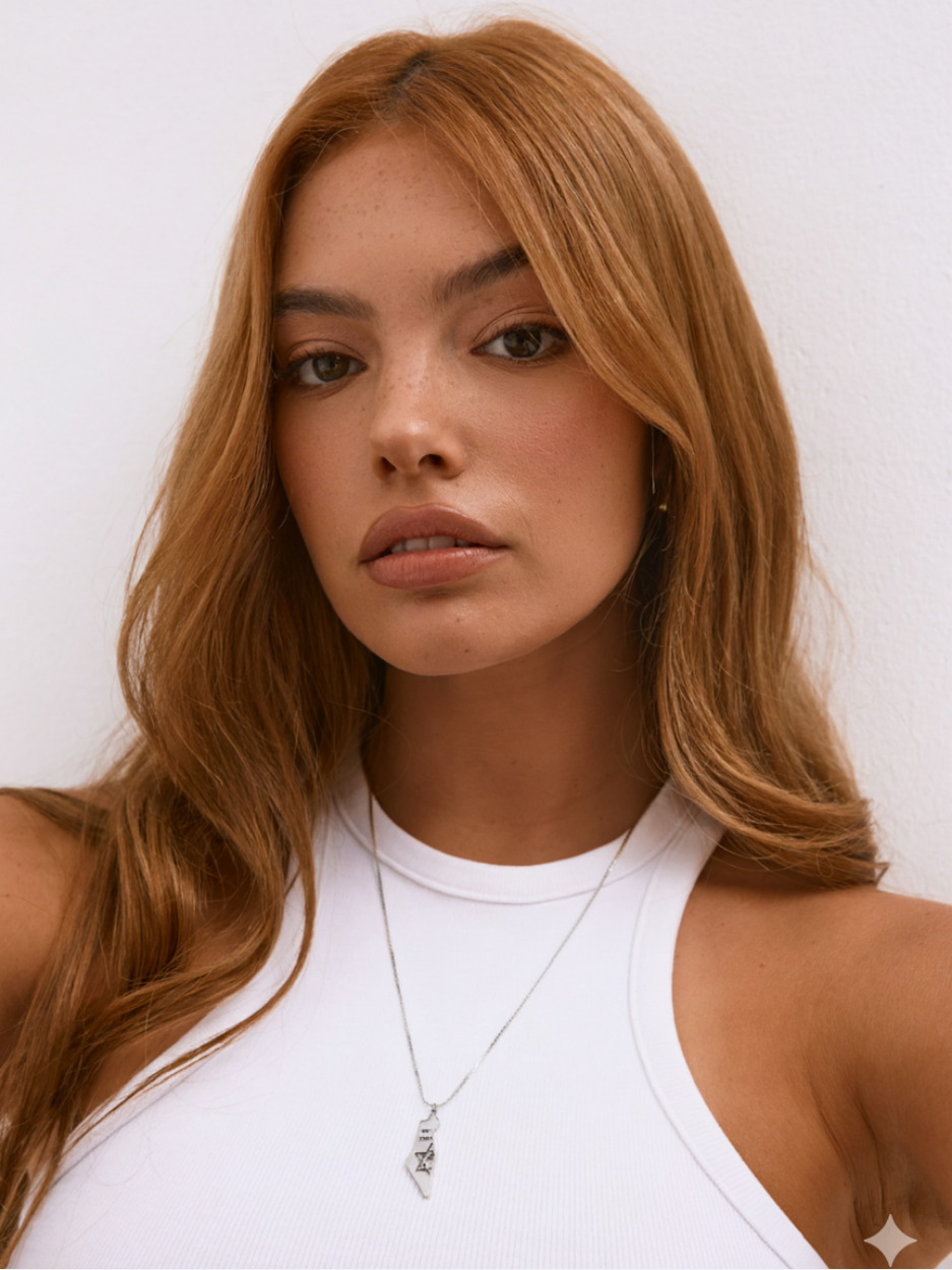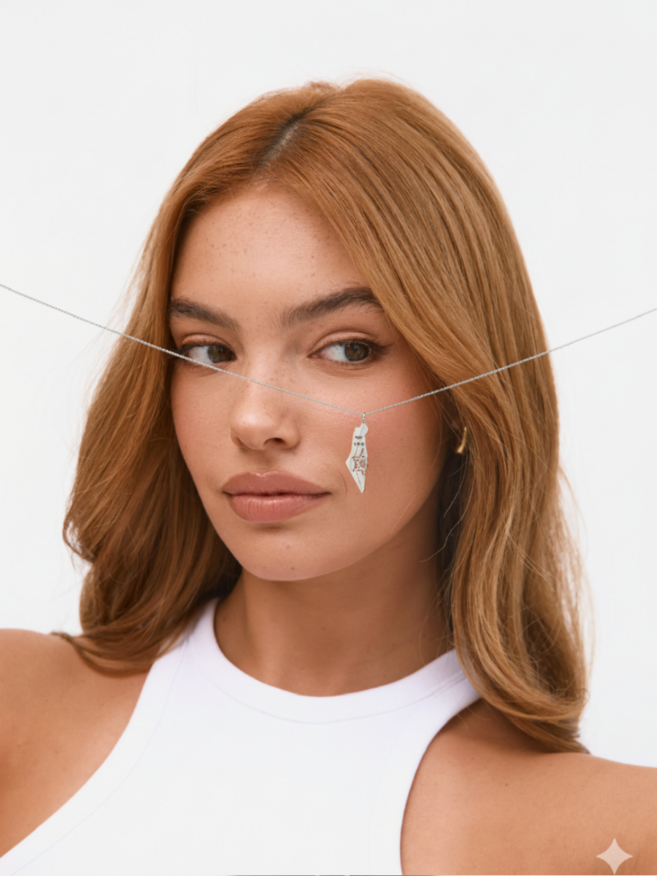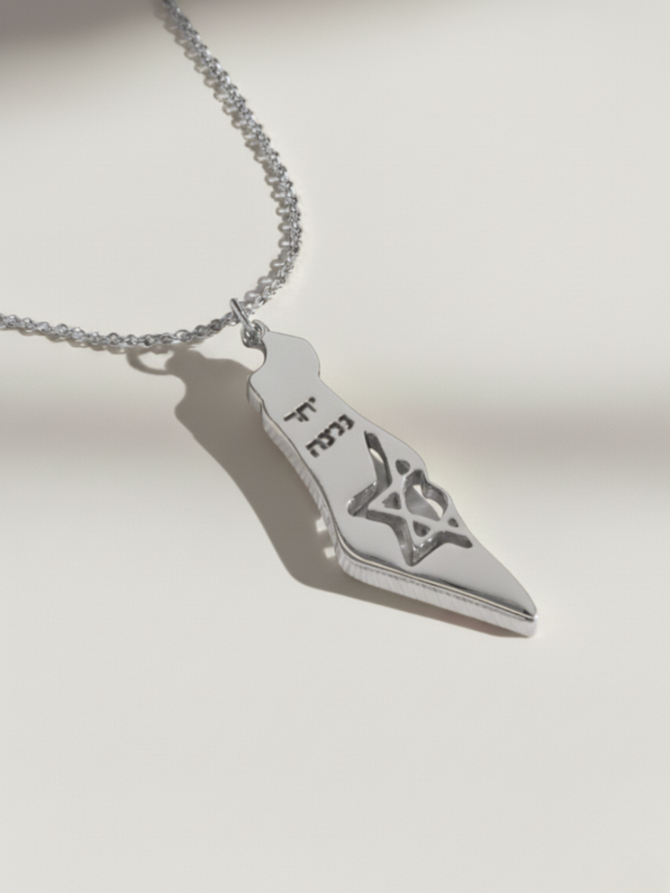שרשרת עדינה כסף בשילוב תליון מפת הארץ עם כיתוב ״יחד ננצח״