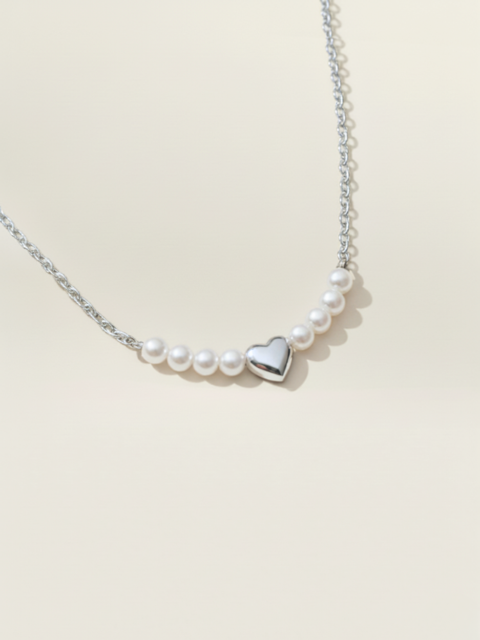שרשרת כסף עדינה בשילוב פנינים מתורבתות ותליון לב