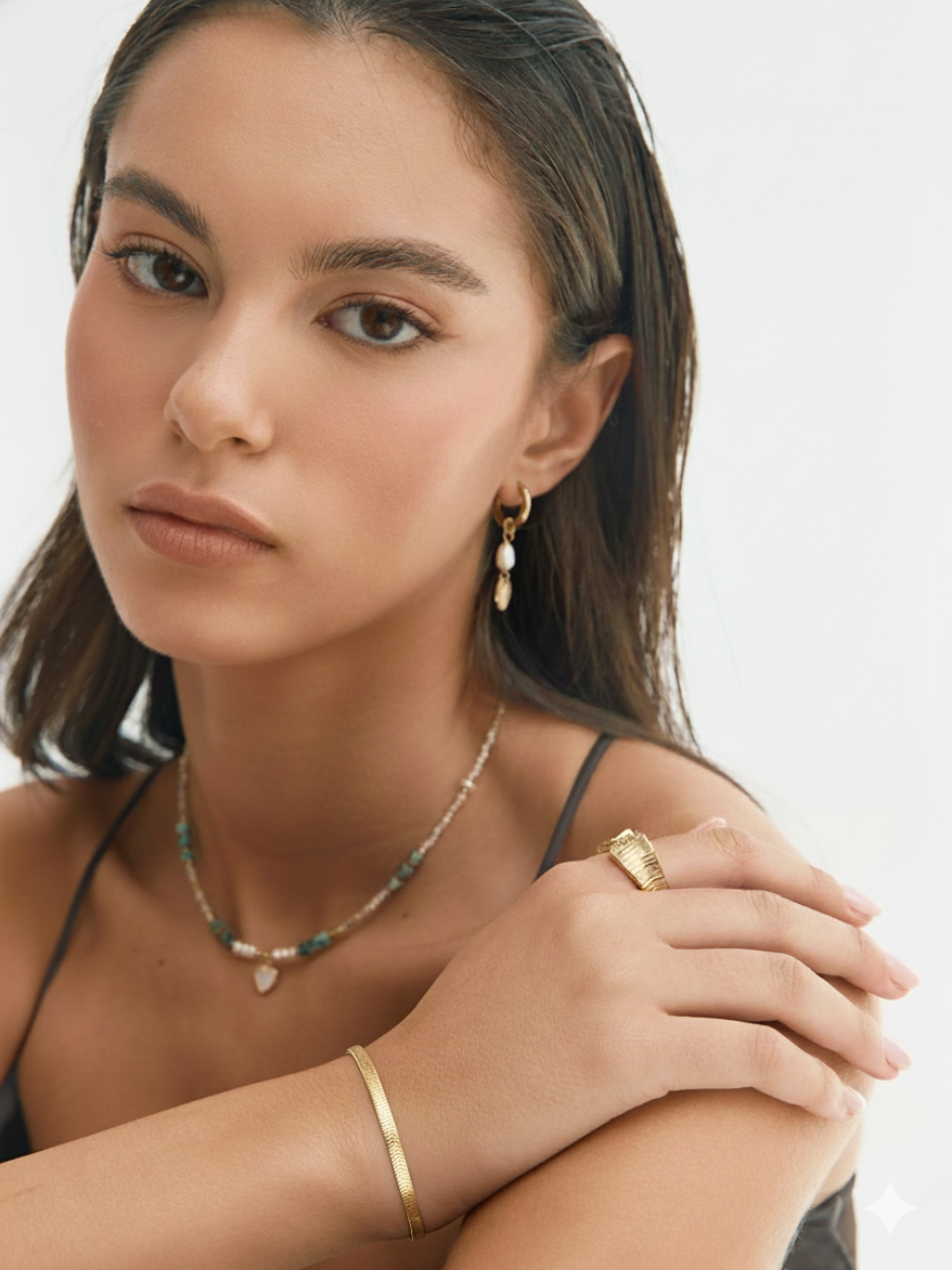צמיד זהב עדין בסגנון נחש עם עיצוב מודרני וגמיש, שמתאים למגוון רחב של סגנונות,