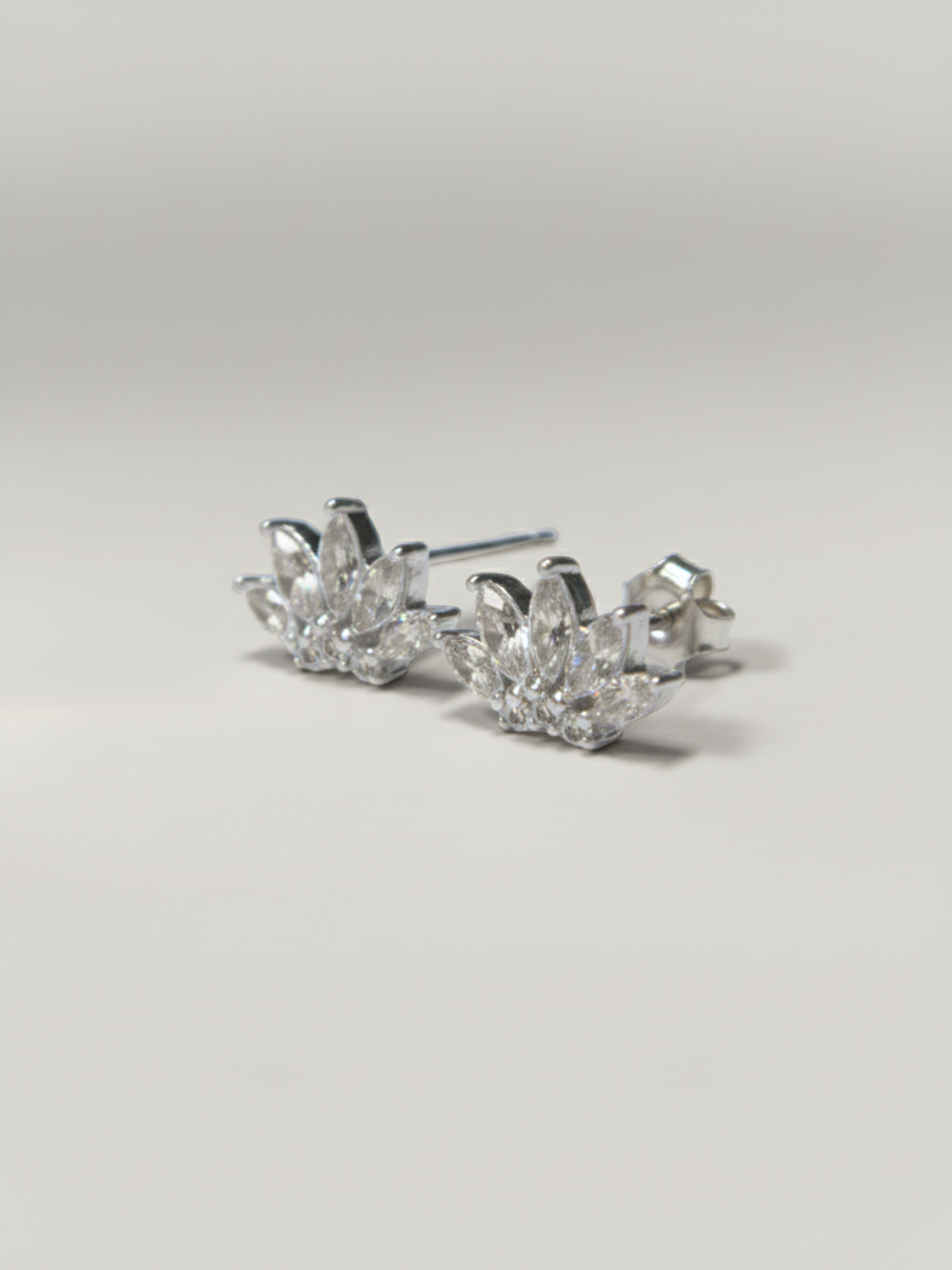 זוג עגילי כסף צמודים עדינים עם תליון משובץ של פרח