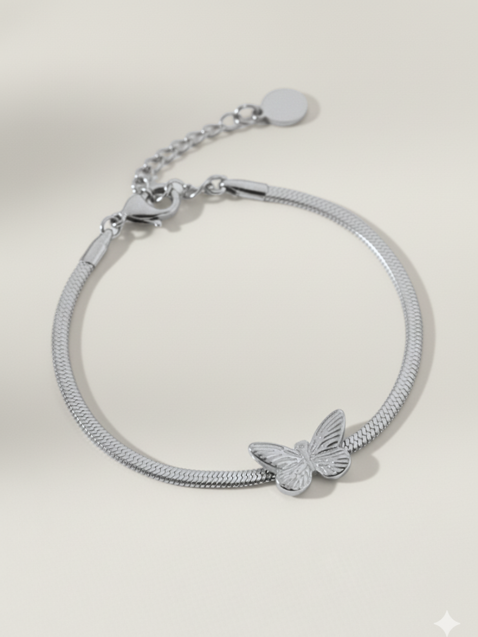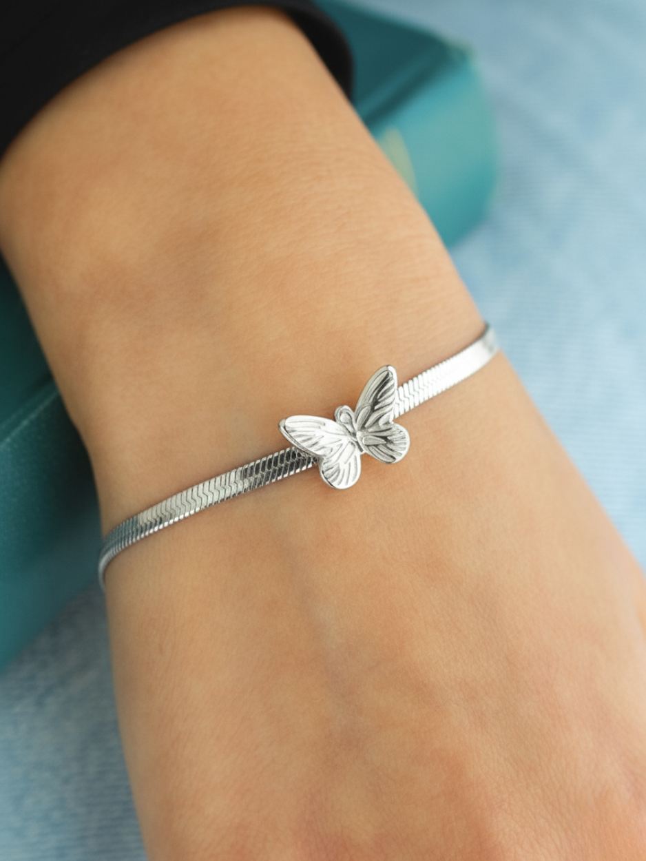 צמיד נחש כסף בשילוב פרפר זהב מהודר